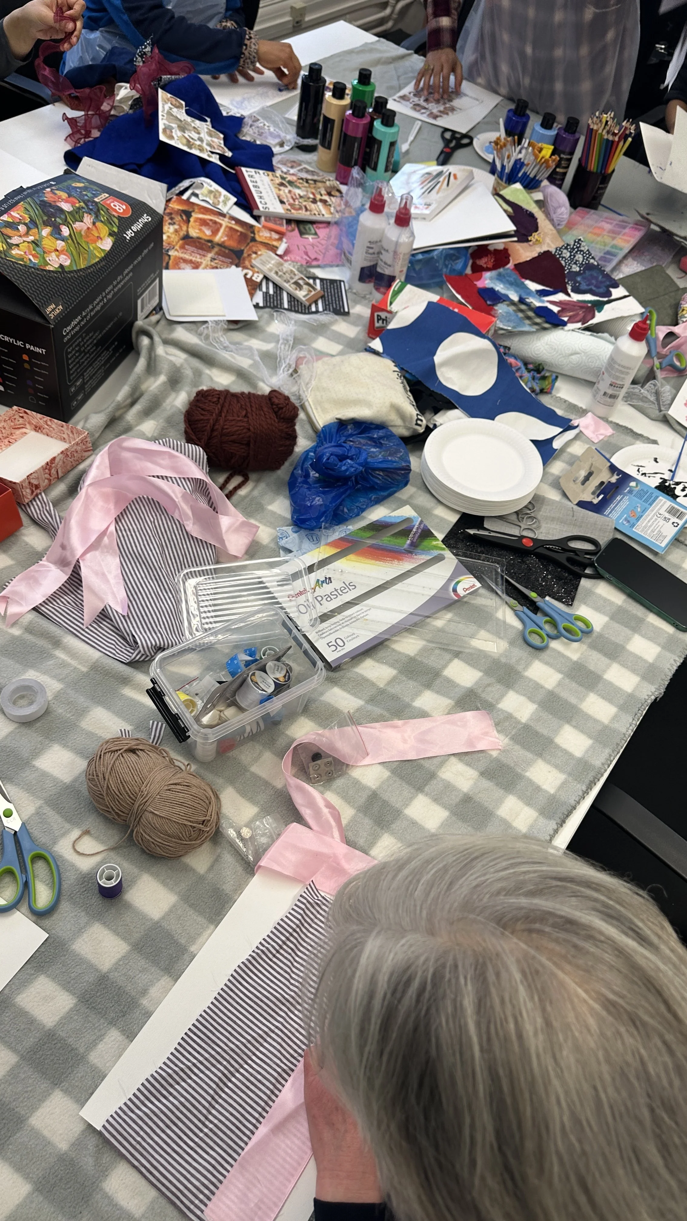 Using fabric scraps, beads, collage, and personal materials, participants created individual memory pages that blended texture, colour, and storytelling. Each artwork became part of a shared community scrapbook and a growing archive celebrating collective journeys of identity and belonging.